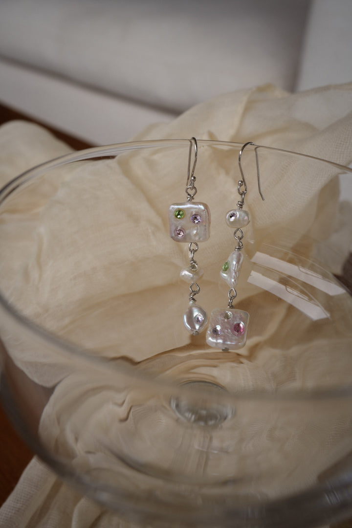 Discover the playful charm of Keshi Cascade in Garden Blooms, where genuine freshwater pearls are delicately bejewelled by hand with sparkling rhinestones. This unique blend of natural elegance and shimmering fun adds a pop of color and sparkle to any outfit, making every day feel like a special occasion. Perfect for those who love a touch of whimsy with their classic pearls!