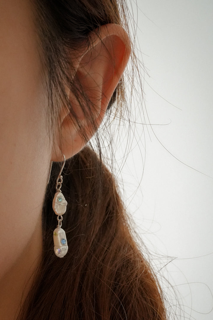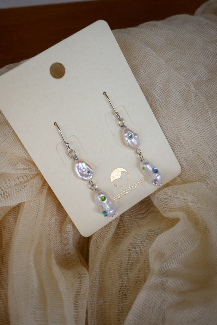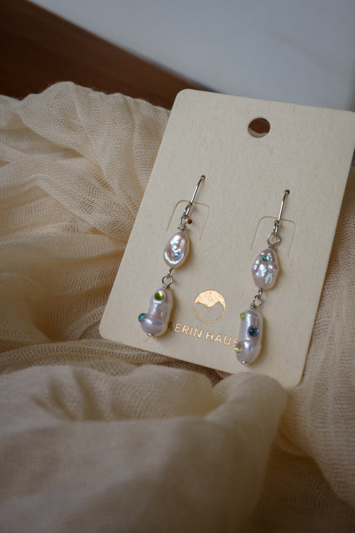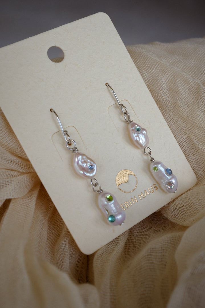 Discover the playful charm of Keshi Ravine in Lake Blue, where genuine freshwater pearls are delicately bejewelled by hand with sparkling rhinestones. This unique blend of natural elegance and shimmering fun adds a pop of color and sparkle to any outfit, making every day feel like a special occasion. Perfect for those who love a touch of whimsy with their classic pearls!
