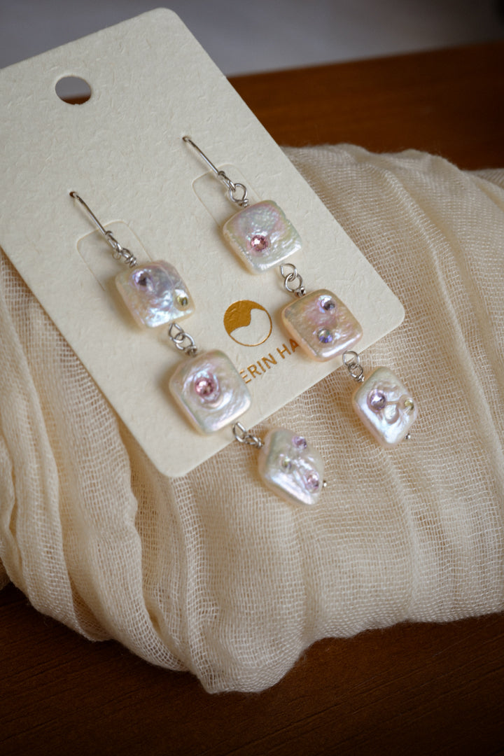 Discover the playful charm of Keshi Tiles in Tulip Fields, where genuine freshwater pearls are delicately bejewelled by hand with sparkling rhinestones. This unique blend of natural elegance and shimmering fun adds a pop of color and sparkle to any outfit, making every day feel like a special occasion. Perfect for those who love a touch of whimsy with their classic pearls!