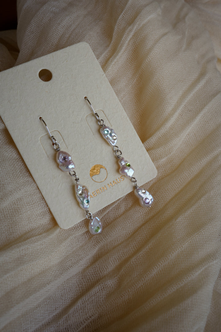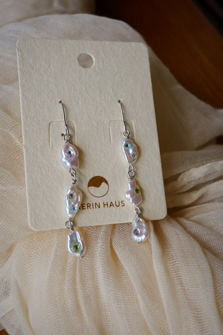 Discover the playful charm of Keshi Waterfall in Treasure Chest, where genuine freshwater pearls are delicately bejewelled by hand with sparkling rhinestones. This unique blend of natural elegance and shimmering fun adds a pop of color and sparkle to any outfit, making every day feel like a special occasion. Perfect for those who love a touch of whimsy with their classic pearls!