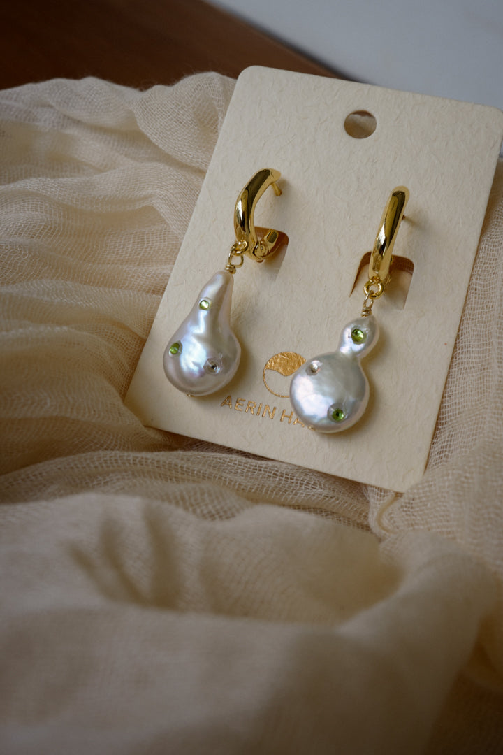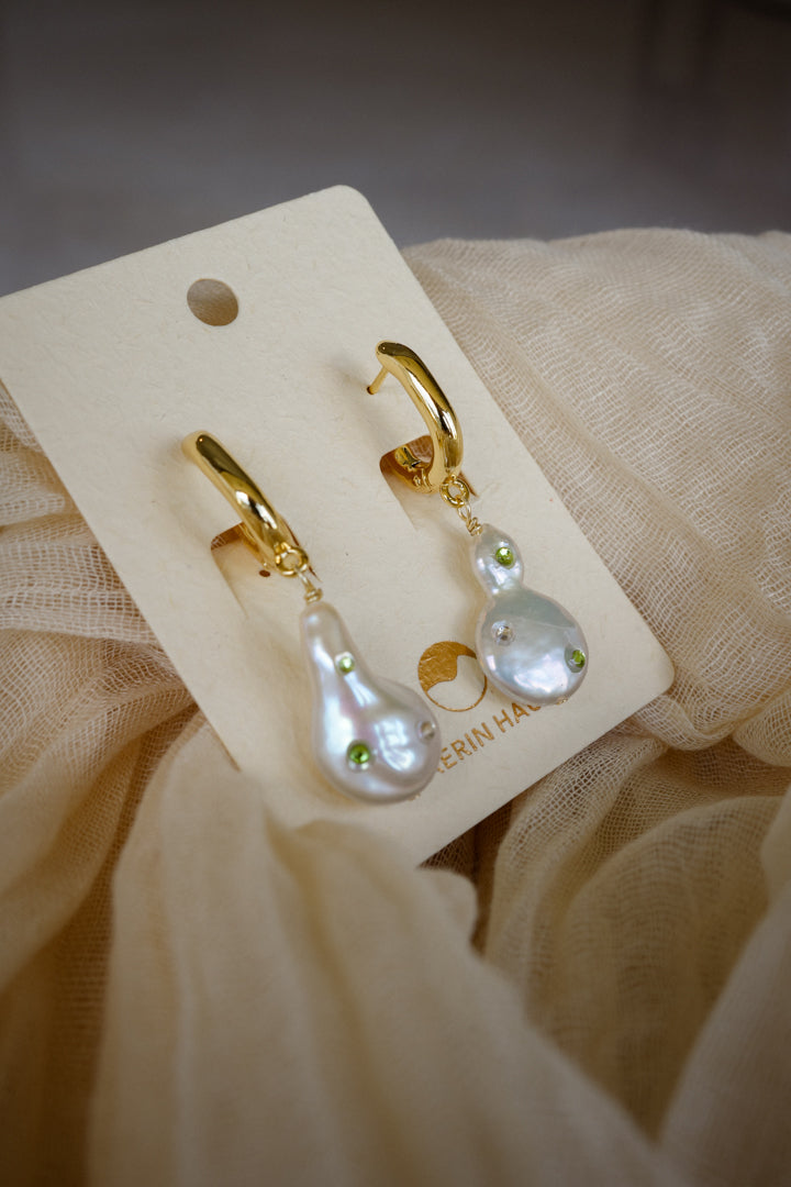 Discover the playful charm of Meta in Olive Green, where genuine freshwater pearls are delicately bejewelled by hand with sparkling rhinestones. This unique blend of natural elegance and shimmering fun adds a pop of color and sparkle to any outfit, making every day feel like a special occasion. Perfect for those who love a touch of whimsy with their classic pearls!