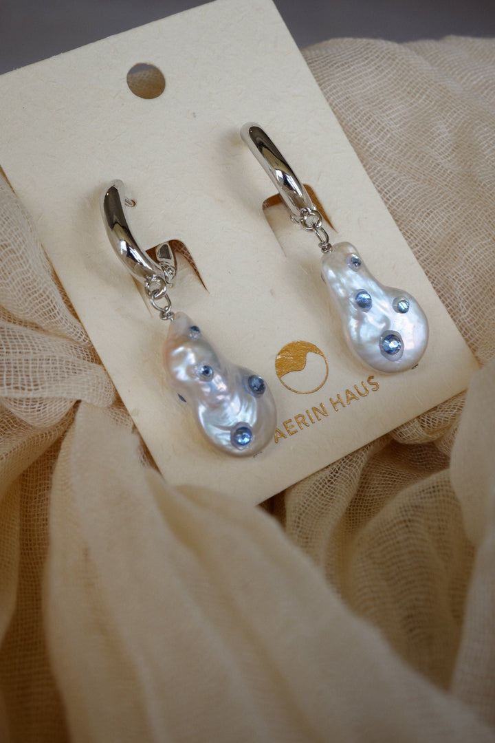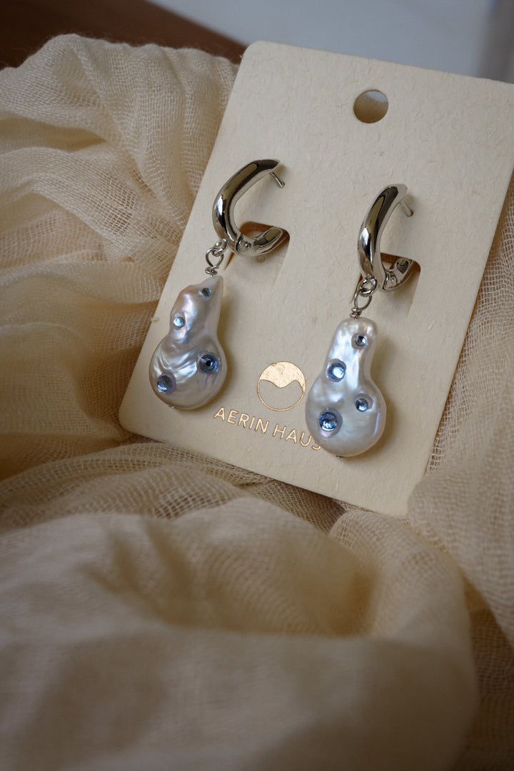 Discover the playful charm of Meta in Sapphire Blue, where genuine freshwater pearls are delicately bejewelled by hand with sparkling rhinestones. This unique blend of natural elegance and shimmering fun adds a pop of color and sparkle to any outfit, making every day feel like a special occasion. Perfect for those who love a touch of whimsy with their classic pearls!